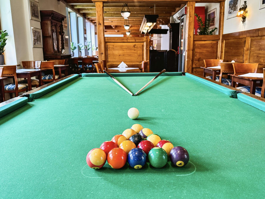 Mūsų vestibiulyje galite nemokamai žaisti biliardą ir būti saugūs